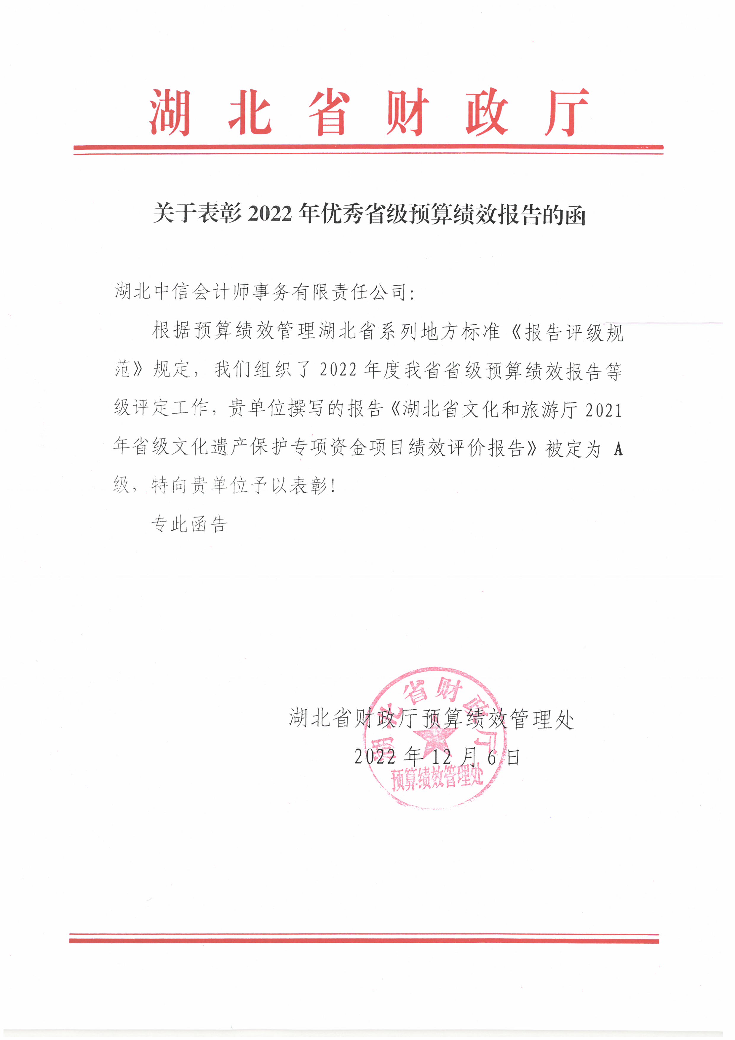 2022年優(yōu)秀省級(jí)預(yù)算績效報(bào)告函