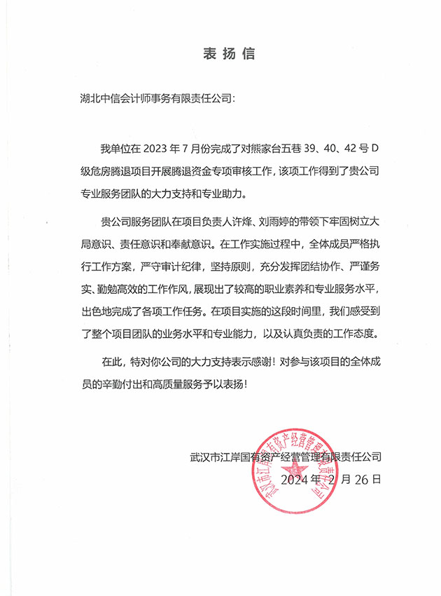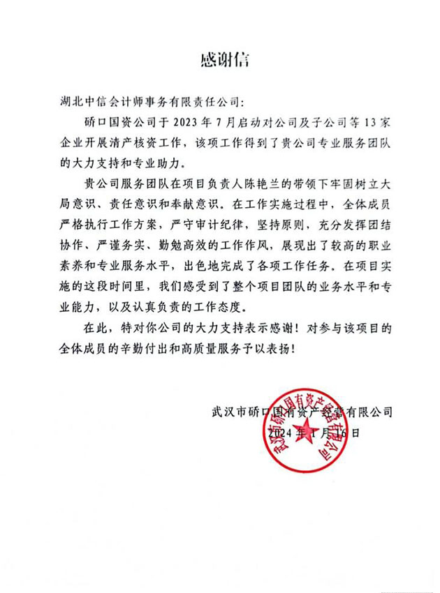 武漢昌索房地產(chǎn)開發(fā)有限公司專項(xiàng)調(diào)查項(xiàng)目感謝信