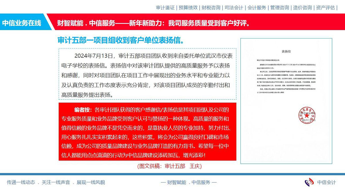 07/222024武漢市儀表電子學(xué)校收支專項審計表揚信