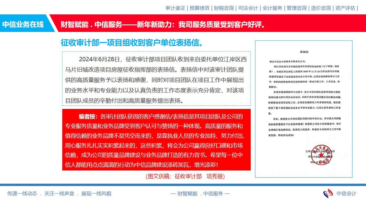 07/092024江岸區(qū)西馬片舊城改造項(xiàng)目房屋征收指揮部表?yè)P(yáng)信