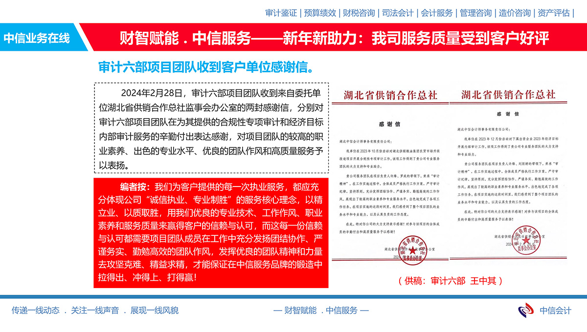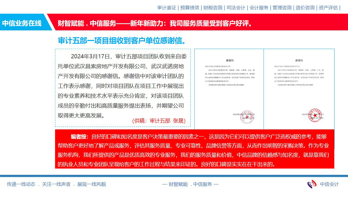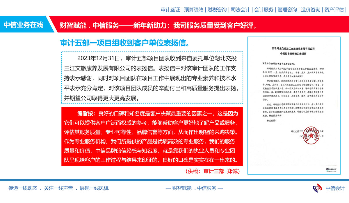 ——我司一年報審計項目服務(wù)質(zhì)量受到客戶好評 -