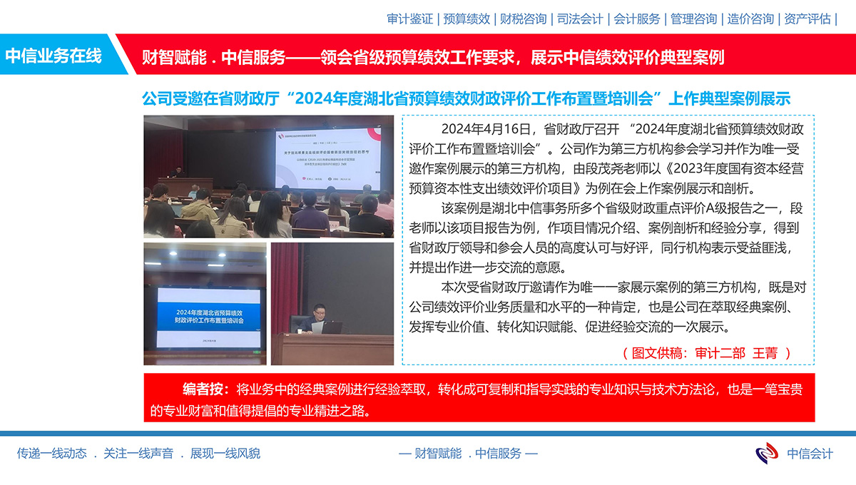 ——受邀在湖北省財政廳“2024年度湖北省預(yù)算績效財政評價工作布置暨培訓(xùn)會”上作典型案例展示 -