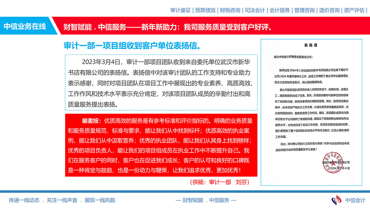 03/152024審計一部一項(xiàng)目組收到客戶單位表揚(yáng)信