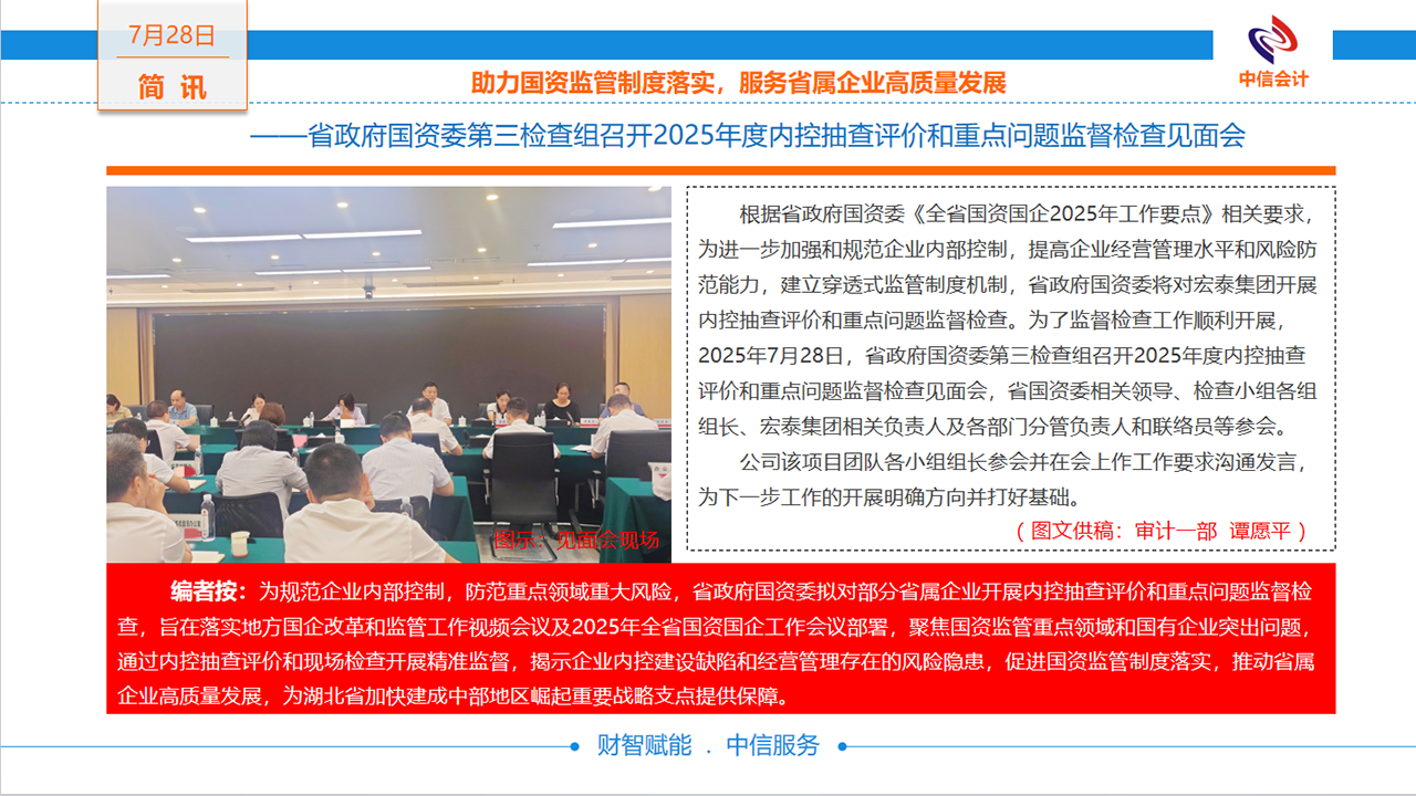 ——省政府國(guó)資委對(duì)宏泰集團(tuán)開(kāi)展2025年度內(nèi)控抽查評(píng)價(jià)和重點(diǎn)問(wèn)題監(jiān)督檢查工作有序高效開(kāi)展 -
