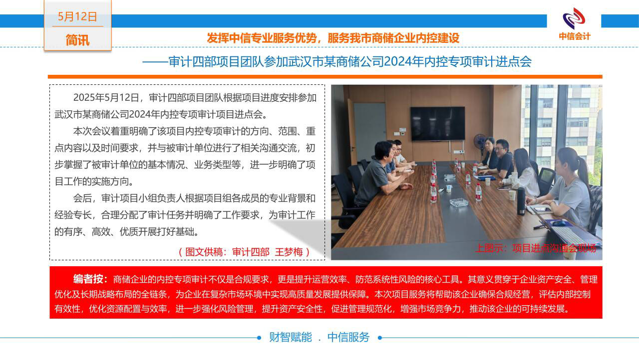 ——審計四部項目團隊參加武漢市某商儲公司2024年內(nèi)控專項審計進點會