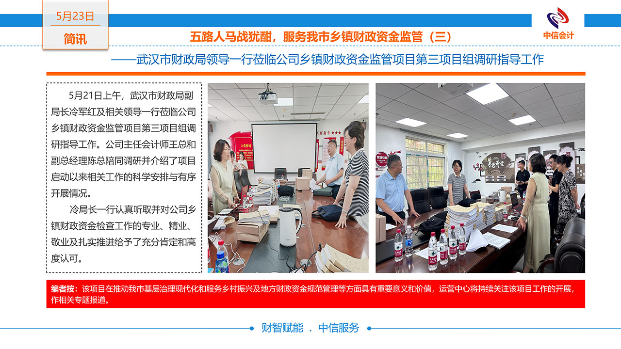 ——公司武漢市鄉(xiāng)鎮(zhèn)財政資金使用監(jiān)管突出問題專項整治項目五個項目組全部進點并扎實高效推進 -