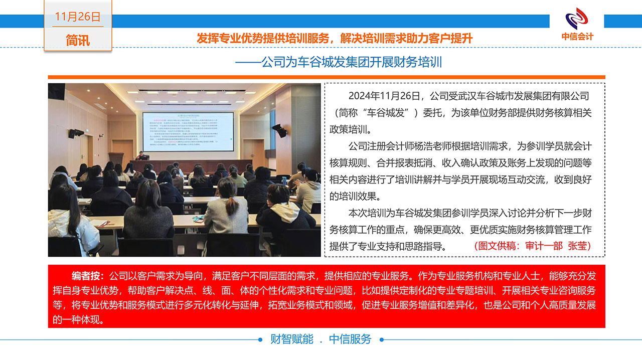 12/092024湖北中信會(huì)計(jì)師事務(wù)所受邀為江岸區(qū)行政事業(yè)單位開(kāi)展內(nèi)部控制體系建設(shè)專(zhuān)題培訓(xùn)
