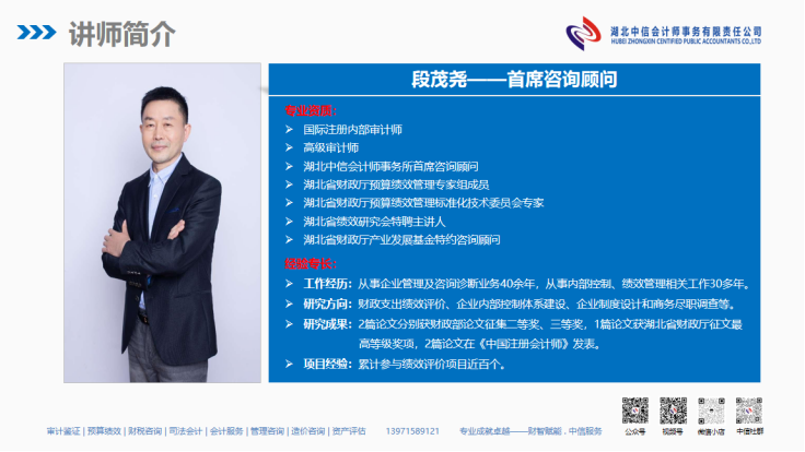 湖北中信會計師事務(wù)所持續(xù)深耕預(yù)算績效管理業(yè)務(wù)領(lǐng)域10多年,始終緊抓“服務(wù)國家建設(shè)”的主題,秉持“專業(yè)創(chuàng)造價值”的理念,以政策為綱領(lǐng)、以需求為導(dǎo)向、以專業(yè)為力量,堅持“以專業(yè)研究指導(dǎo)執(zhí)業(yè)實踐,以執(zhí)業(yè)實踐豐富經(jīng)驗萃取,以經(jīng)驗萃取充實專業(yè)咨詢”和“以執(zhí)業(yè)實踐孵化專業(yè)隊伍,以專業(yè)隊伍提升服務(wù)質(zhì)量,以服務(wù)質(zhì)量打造業(yè)務(wù)品質(zhì)”的“理論+實踐”雙循環(huán)和“專業(yè)+服務(wù)”雙結(jié)合的模式,形成預(yù)算績效管理和績效評價相關(guān)專業(yè)服務(wù)項目、定制化培訓(xùn)課程和專業(yè)咨詢服務(wù)等產(chǎn)品系列,推進(jìn)公司預(yù)算績效管理業(yè)務(wù)品牌打造和專業(yè)服務(wù)品質(zhì)提升,累計為省、市、區(qū)40多個政府部門和企事業(yè)單位提供專業(yè)服務(wù),賦能客戶單位預(yù)算績效管理能力提升和科學(xué)、規(guī)范的預(yù)算績效管理體系構(gòu)建,時刻準(zhǔn)備著為財政資金預(yù)算管理保駕護(hù)航及提質(zhì)增效注入專業(yè)動能和實效價值,助力省、市、區(qū)大財政體系建設(shè),為經(jīng)濟(jì)社會的高質(zhì)量發(fā)展,貢獻(xiàn)中信專業(yè)智慧和力量!
