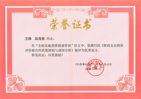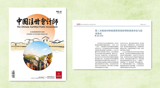不僅是制度規(guī)范建設(shè)有中信“身影”,在基礎(chǔ)理論研究領(lǐng)域也有中信“聲音”。2020年5月18日,由王靜、段茂堯兩位同志聯(lián)名撰寫的《第三方機(jī)構(gòu)對財(cái)政預(yù)算績效管理的效果評估與改善建議》一文,成功發(fā)表在2020年第5期的《中國注冊會(huì)計(jì)師》上,在行業(yè)最高期刊發(fā)表論文。在對外鞏固中信“品牌”的同時(shí),進(jìn)一步激勵(lì)了全體中信人深耕業(yè)務(wù)做精做優(yōu),助推行業(yè)高質(zhì)量發(fā)展中彰顯中信作為。