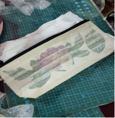 孩子們將洗凈擦干的花草樹(shù)葉按照自己喜歡的方式排列,并用透明膠帶將植物固定在筆袋上,有的整齊排列,有的錯(cuò)落有致。