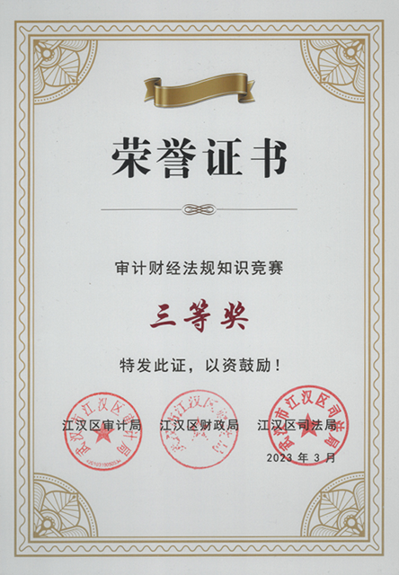 “審計財經法規(guī)知識競賽”決賽中榮獲三等獎