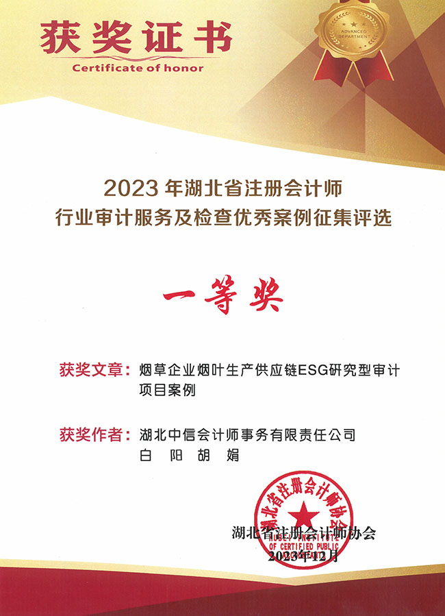 2023年湖北省行業(yè)審計服務及檢查優(yōu)秀案例一等獎