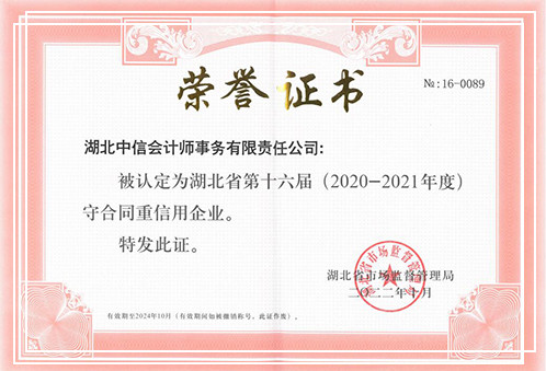 榮獲湖北省第十六屆(2020—2021年度)“守合同 重信用”企業(yè)榮譽稱號