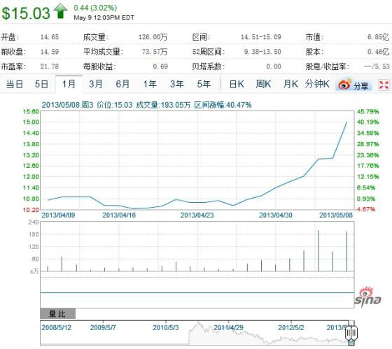 可以作為佐證的是,高德股價在過往10個交易日中持續(xù)快速上漲,從4月26日的10.5美元,上漲至5月9日的15美元,漲幅高達43%。